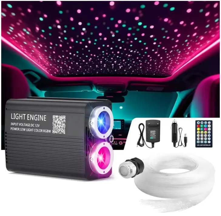 The Twinkle & Meteor Starlight Headliner Kit transforms your car interior with 750 high-quality fiber optic strands that create a vivid starry-sky effect. The 16W RGBW light engine offers bright, customizable colors along with twinkle and meteor modes that add movement and depth to your cabin lighting. With 200 white shooting stars included, the ceiling looks dynamic and luxurious, making your vehicle stand out both day and night. This kit is perfect for drivers who want an ambient, relaxing atmosphere and an eye-catching upgrade that mirrors the look of premium luxury cars
