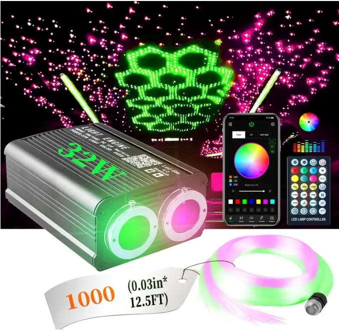 This 800-piece fiber optic kit delivers an impressive star ceiling with dual-color twinkle effects and vibrant RGB meteor streaks for a premium, dynamic look. The powerful 32W engine ensures brighter, clearer stars that stand out in cars, trucks, boats, RVs, or home theaters. With long 0.75mm fibers, you can easily cover larger areas and create more detailed patterns. It’s a perfect choice for anyone wanting a high-brightness, customizable star ceiling that offers both elegance and visual impact